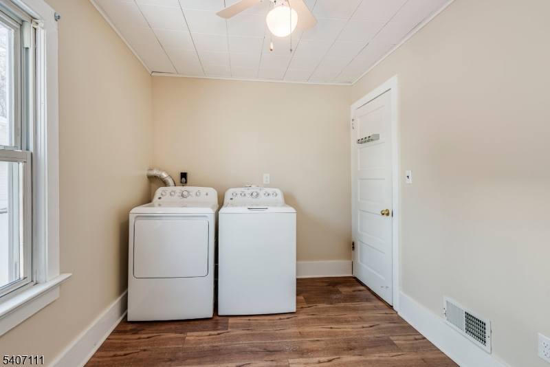 Meticulously maintained and truly move-in ready, this 3-bedroom, 1-bath ranch offers effortless one-level living in a prime Newton location. Step inside and you'll find a spacious living room and an easy, functional layout. The updated eat-in kitchen features warm wood cabinetry, Corian countertops, tiled flooring, and a large picture window overlooking the backyard filling the space with natural light for the perfect eat in area. The full tiled bath includes an oversized, handicap-accessible walk-in shower (2021) and ample storage. The third bedroom is currently used as a laundry room, with additional washer/dryer hookups available in the basement. Newer LVP flooring, fresh paint, and numerous updates make this home truly turnkey. Additional highlights include central air (approx. 5 years old), vinyl siding for low maintenance, and all appliances included. Outside, enjoy a welcoming front porch with Trex decking, a flat backyard, and a detached one-car garage. The large unfinished basement offers excellent storage or future potential. Public water, public sewer, a Roth oil tank, low taxes, and meticulous care throughout add peace of mind. Ideally located just two blocks from Thor Labs and Merriam Elementary, and a short walk to Pine Street Park or downtown. Plus Newton residents enjoy free full-day preschool and a free town pool membership. Low-maintenance, walkable, and move-in ready this is Newton living at its best.