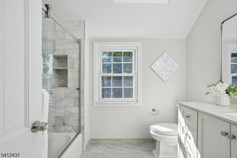 Renovated in 2023, this charming home features interiors filled with natural light and clean, contemporary updates. The living room with a decorative fireplace flows seamlessly into formal dining and family rooms, offering a practical layout for daily living and entertaining. The designer kitchen features custom cabinetry, a spacious center island and a skylight that gives the space comfort and warmth. A private office completes the first level, offering flexibility for work, study or quiet retreat. Upstairs, three well proportioned bedrooms share a fully updated and skylit bath. The finished lower level provides additional recreation space, ideal for media, fitness or play. Outside, a fully fenced backyard and patio create a lovely setting for gatherings or relaxation. An attached garage and level lot add to the home's everyday ease. Just moments from the Short Hills train station and top rated Millburn Township schools, this home combines timeless style, modern upgrades and exceptional convenience in one of Short Hills' most sought after neighborhoods.