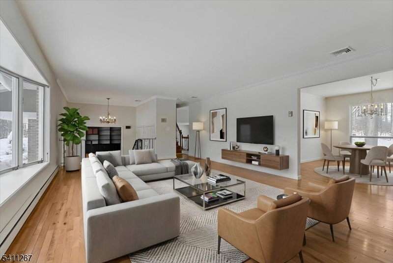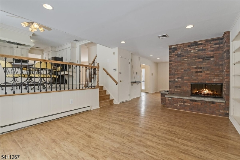 Set on 1.5 serene, wooded acres in sought-after Watchung, this beautifully updated 2,800 sq ft brick-front home offers privacy, versatility, and exceptional commuter convenience.Originally built in 1968 and thoughtfully renovated in 2019, the home blends classic architecture with refreshed interiors. Newly painted throughout with hardwood flooring across both levels, it feels cohesive, warm, and move-in ready.The multi-level layout creates natural separation for living, working, and entertaining. A dedicated first-floor office and adjacent den provide rare flexibility. The living room features a beautiful 2 sided gas fireplace, adding warmth and character.Upstairs, the primary suite includes a walk-in closet and renovated en-suite bath. Two additional bedrooms, an updated full bath, and a first-floor powder room complete the home.Outdoors, a paver patio with built-in grill station overlooks the flat, wooded acreage ? offering usable space while maintaining privacy. Oversized two-car garage. Minutes to highways, NJ Transit trains and buses, downtown amenities, and area hospitals. Ideal for NYC commuters, move-up buyers, or those seeking top-rated schools in a refined suburban setting.