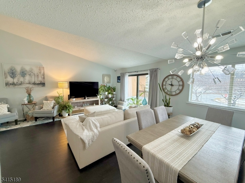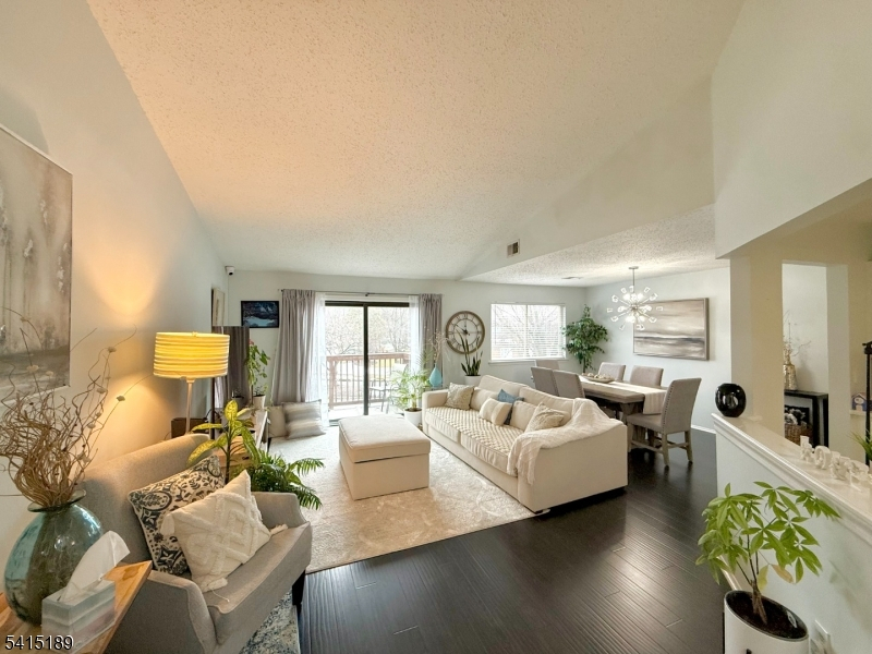 Welcome to this move-in ready 2-bedroom, 2-bath condo offering comfort, convenience, and a desirable open layout. This second-floor unit features soaring ceilings and a bright open floor plan, creating a spacious and inviting atmosphere. The primary suite includes a walk-in closet and private full bath, while the eat-in kitchen is equipped with stainless steel appliances and space for everyday dining.Enjoy a large living room with sliding doors leading to your private deck, perfect for relaxing or entertaining. Additional highlights include in-unit washer and dryer, an attached garage, and access to community amenities including a pool and tennis courts.Ideally located just minutes from Routes 10, 46, and 80, with easy access to shopping, dining, and everyday conveniences, making commuting simple.