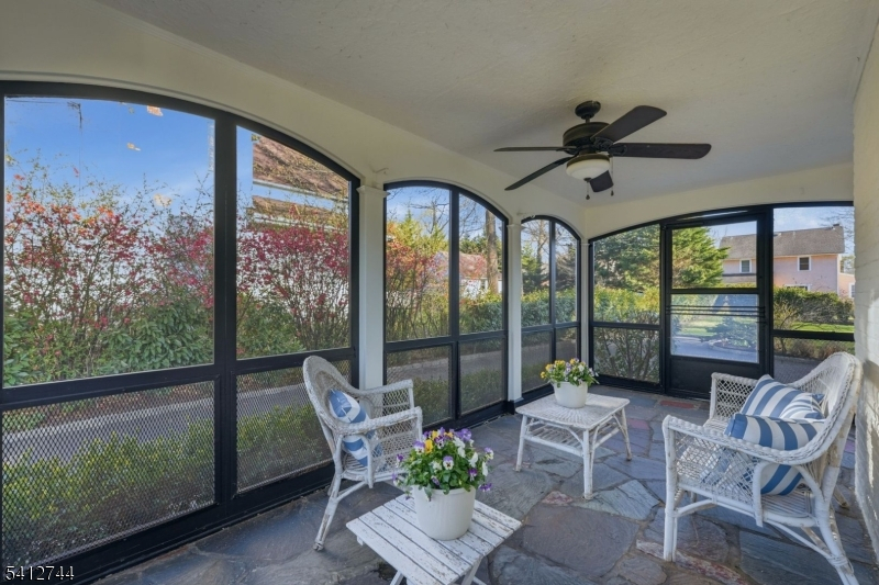 This inviting Colonial Cape offers classic charm from the start, with its brick front and staggered wooden shingles for maximum curb appeal. The main level includes a spacious living room with a cozy fireplace, a formal dining room for gatherings, and an eat-in kitchen with a pantry, along with a handy powder room and a sunporch that brings in great natural light. Wood floors, Pella windows, central air, and an attached two-car garage add to the home's practicality. The second floor features three generously sized bedrooms and two full baths, including a primary suite with two closets and a full bathroom; another bedroom includes an extra room ideal for a home office, play space, or walk-in closet, and the third bedroom also offers a large closet. The finished lower level adds even more usable space with a recreation room and a large area for laundry, utilities, and storage. Outside, the backyard is designed for relaxing and entertaining, with a custom patio, Belgian block accents, a garden shed, and thoughtful landscaping perfect for outdoor dining and barbecues. Located near the Sleepy Hollow section and close to the Netherwood and Plainfield train stations, the home offers a nice balance of neighborhood charm and commuter-friendly convenience. Chimney, fireplace and flues are "as is" condition with no known issues.