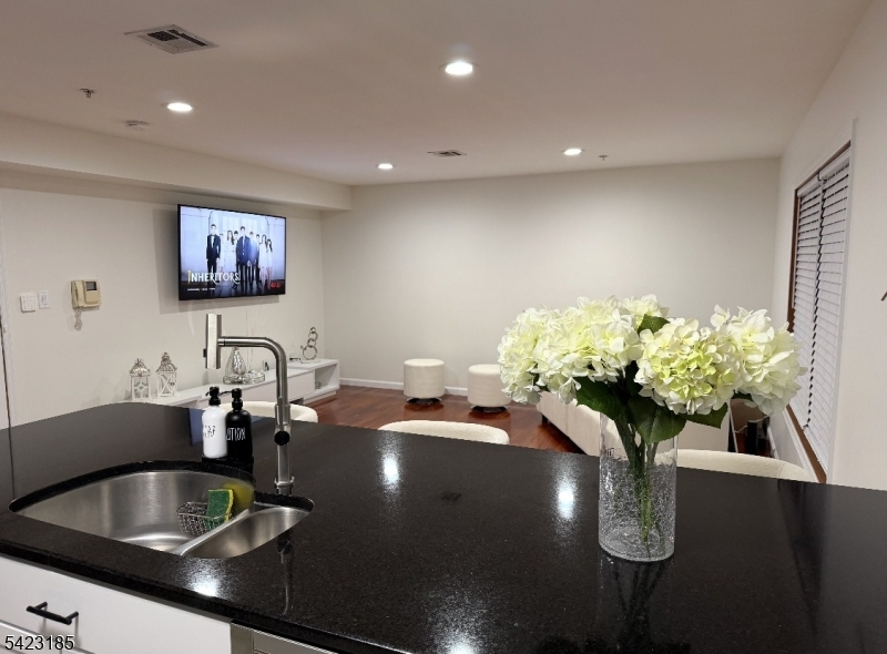 This bright and generously sized condo combines comfort and convenience in a prime location. Featuring rich cherrywood flooring, large windows, and an open-concept layout, the space is perfect for both relaxing and hosting. The modern kitchen is equipped with maple shaker cabinetry, stainless steel appliances, and a granite breakfast bar. The bedroom is filled with natural light and offers plenty of closet space, complemented by an additional oversized hallway closet for extra storage. Residents enjoy central air, an in-unit washer and dryer, elevator access, and indoor parking. Located just two blocks from direct transportation to Port Authority and close to major highways, this home is ideal for commuters. Surrounded by parks with stunning skyline views and just minutes from shopping and dining, it presents a fantastic opportunity in a highly desirable Hudson County neighborhood.