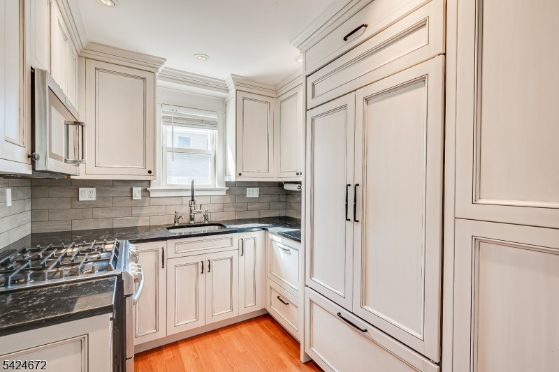 Beautifully renovated and thoughtfully reimagined, this architectural gem blends timeless craftsmanship with modern luxury offering a level of detail and design rarely found. Originally designed as a three bedroom home, converted into a spacious two bedroom layout. From the moment you enter, just off the front porch, you'll notice the difference: architecturally accurate details, custom millwork, handcrafted pocket doors that reflect a level of craftsmanship and quality rarely found. Sunlight pours through replacement windows, illuminating rich oak hardwood floors that run seamlessly throughout both levels. The first level offers beautiful open living space: living room, dining room to chefs kitchen. Don't miss the lovely home office and half bath. Custom designed kitchen is both striking and functional, featuring fully handcrafted wood cabinetry, with soft close, hidden storage space. A Chef's dream kitchen with sleek black quartz countertops, a peninsula breakfast bar overlooking the dining area. Premium appliances include a paneled Sub-Zero refrigerator, Fisher & Paykel dishwasher, KitchenAid Suite and Samsung digital oven, all bring an elevated finish. The primary suite offers a sitting area, large closet space and ample sunlight from front and both side views of the home. Upstairs full bathroom offers custom cabinetry, rich black quartz, gorgeous subway tiled showernd, jetted tub and full glass door to tub/shower.