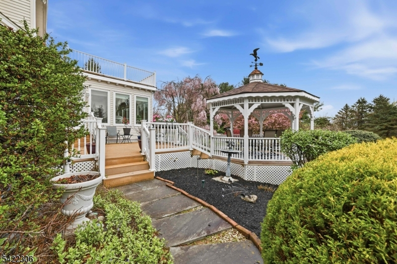 Gorgeous property including perennials, mature pine trees, flowering trees, gazebo, small goldfish pond, decks and patios surround this fantastic Squire Hill custom colonial home, lovingly cared for by its owner of over 25 years. Step inside a two-story welcoming foyer with split staircase and see formal living room, formal dining room and spacious, functional center island kitchen wtih huge breakfast area. Kitchen is open to spacious family room with wood-burning fireplace, as well as 3 season room with freestanding propane gas fireplace, ceramic tile floor and skylights. Powder room, laundry room and access to attached 2 car garage complete the first floor of living space. Second floor has double door entry leading to primary suite with large sitting room area, two walk-in closets and full bath with jetted tub and stall shower. Three additional bedrooms, including one with balcony and mail bath with double vanity round out the second floor. Unfinished basement with high ceilings, 10 year-old roof, blinds, central air, automatic propane generator are just some of the desirable traits this home offers it's new owner. Washington Twp. schools and West Morris Central High School with IB program offer the best in public education! Fireplaces as-is with no known issues. Septic recently inspected.