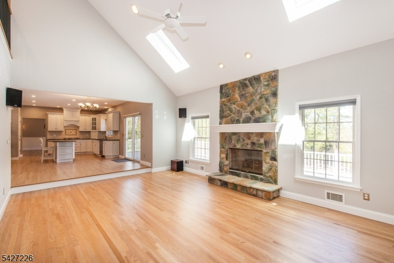 Exceptional Colonial on cul-de-sac street offers a perfect blend of space, functionality, and thoughtful upgrades, featuring five bedrms, four full baths, and a three-car garage equipped with a lift to accommodate a fourth vehicle, along with a hanging organizer system. A dramatic two-story entry foyer sets the tone, leading to a main-level home office, refinished hardwood floors, and 9-foot ceilings throughout main level. The well-appointed kitchen includes a center island, dual wall ovens, stainless steel appliances, exhaust fan, and pantry, seamlessly opening to a stunning two-story family room with a gas fireplace and rear staircase access. Second level hosts four spacious bedrms, including a luxurious primary suite w/ a sitting rm, two walk-in closets, a dressing area, and a beautifully updated 2024 bath featuring a soaking tub & stall shower. Finished walk-out basement expands the living space with a fifth bedrm, full bath, recreation area, and access to a lower patio with hot tub. Outdoor highlights include a 2020 Trex deck overlooking a private, fenced, level backyard, as well as a paver patio, walkway, and storage shed. Additional features include a main-floor laundry rm, 2020 roof and skylights, 2022 two units HVAC, central vacuum, four bedroom town verified septic and deeded Shongum Lake rights, offering year-round enjoyment with boating, beach access, clubhouse, and community events. Path at end of cul-de-sac to schools. A truly outstanding home not to be missed!