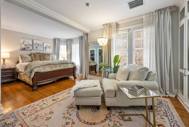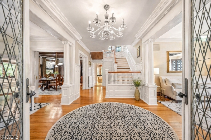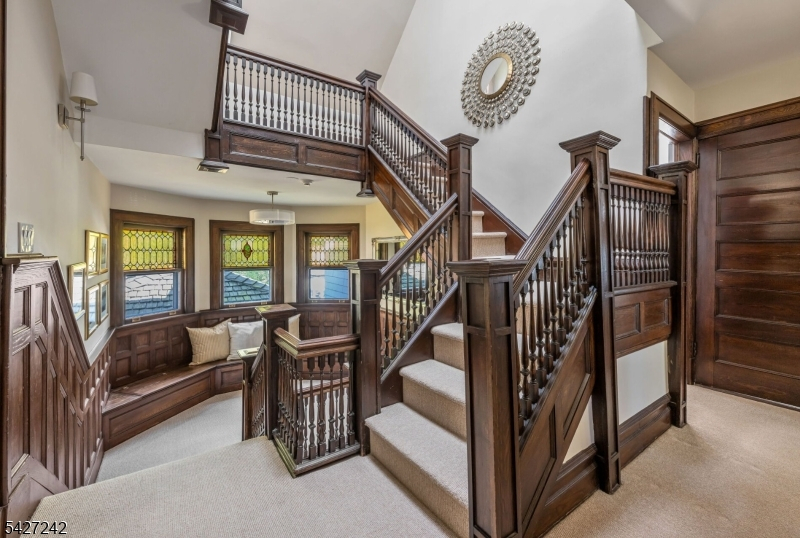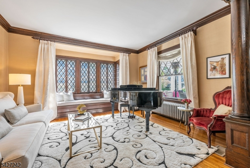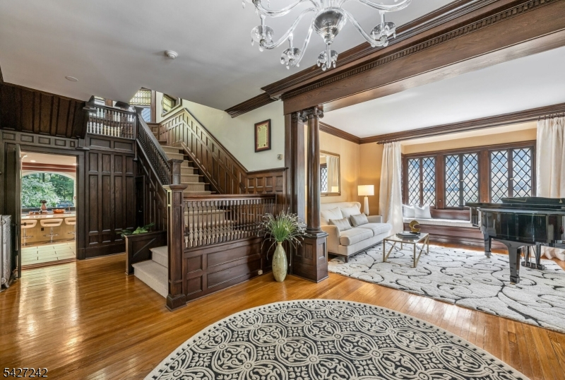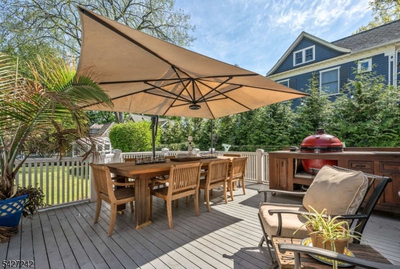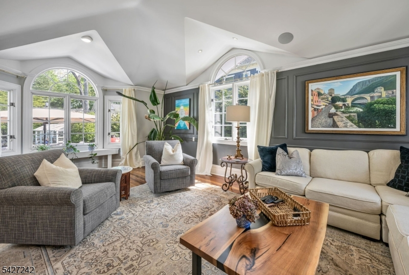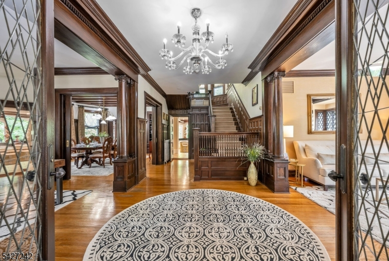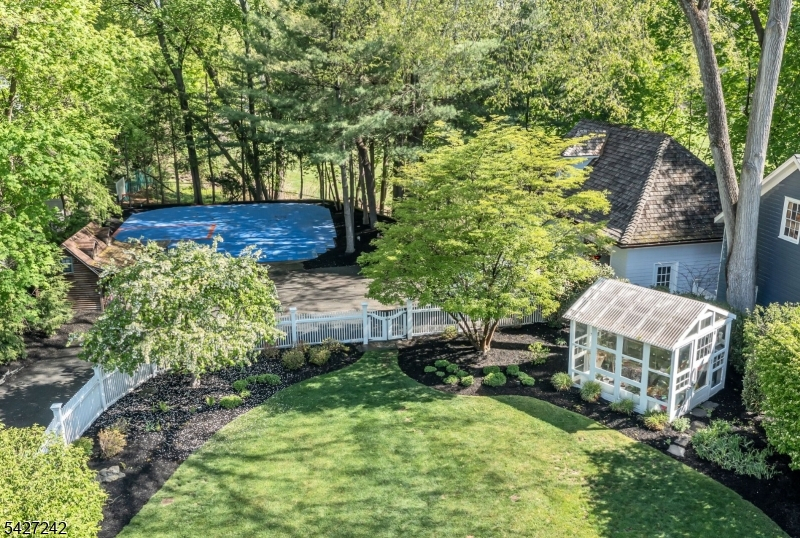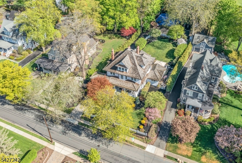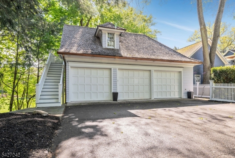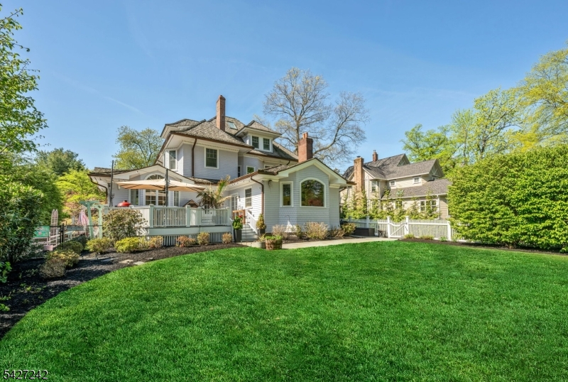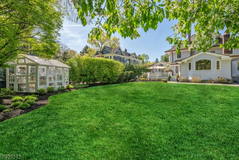 Set on a breathtaking 280-ft landscaped property along prestigious Spring Avenue, this exceptional 5-bedroom, 4.5-bath Colonial is surrounded by some of Ridgewood's most iconic homes, offering a rare blend of timeless beauty and modern luxury. A graceful curved white picket fence, port cochere, and cedar roof create outstanding curb appeal, while the covered front porch invites slow mornings and peaceful evenings. The backyard is a private retreat with a rear deck, greenhouse, sport court, vegetable garden, fenced lawn, and a 3-car garage with a finished loft/studio. Inside, rich original woodwork, a dramatic 3-story staircase, leaded glass French doors, stained glass windows, and coffered ceilings add warmth and character. The newly renovated custom kitchen features a 9-foot island, top-tier appliances, a cozy fireplace, and oversized sun-filled picture windows that bring the outdoors in. Formal living and dining rooms, a private office, and an updated family room with walls of windows plus an adjoining mudroom offer both elegance and ease. Upstairs, the serene primary suite with spa-like bath is complemented by four additional bedrooms and a laundry room. The lower level adds a versatile family room, guest suite, new full bath, second laundry, hobby room, and ample storage. Ideally located near top-rated schools, downtown Ridgewood, and NYC transportation, this is a truly special home ready to be enjoyed for years to come.