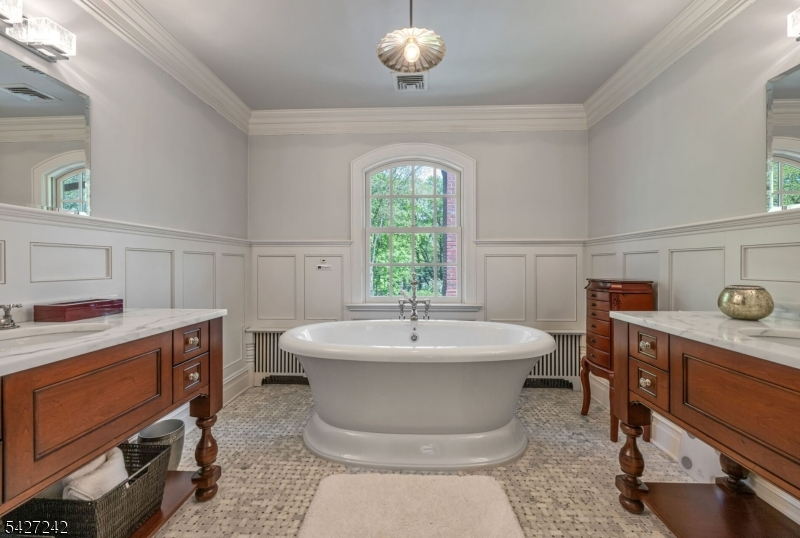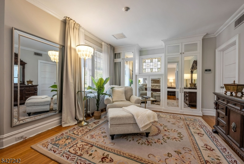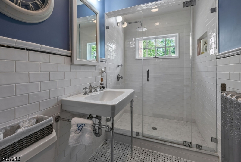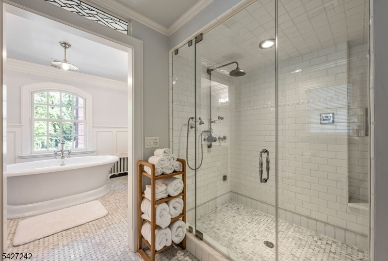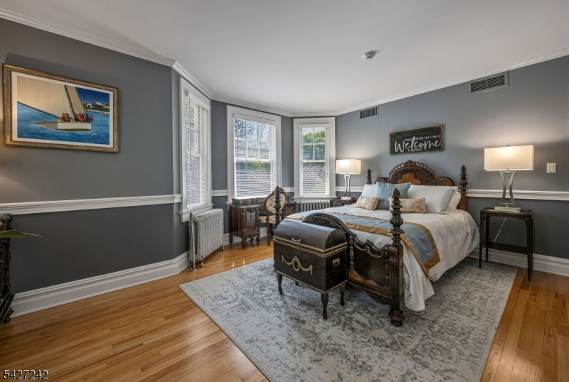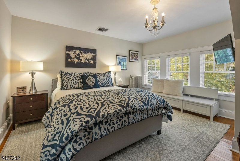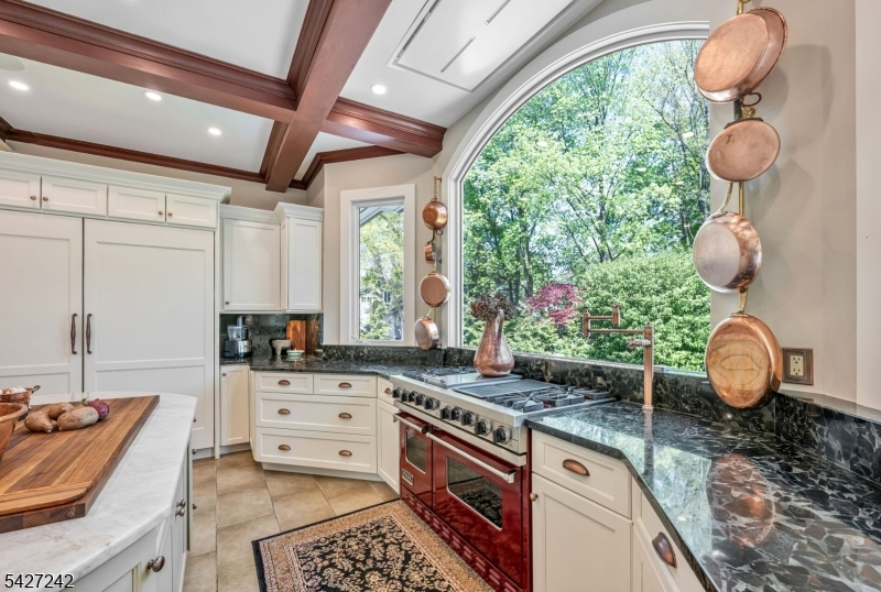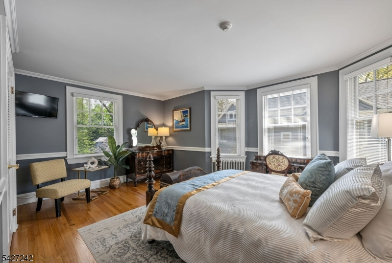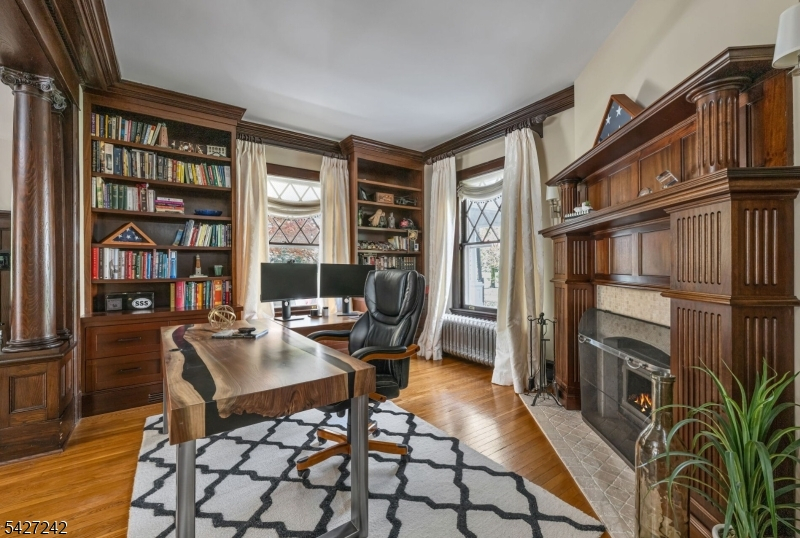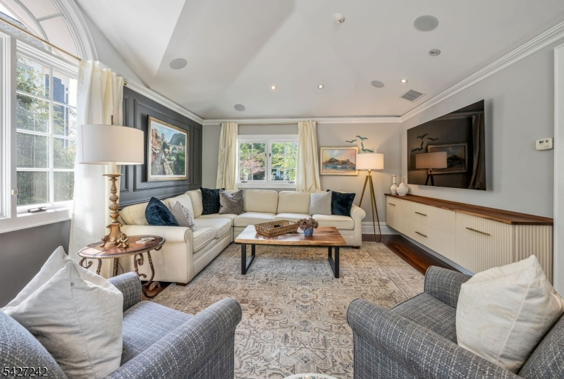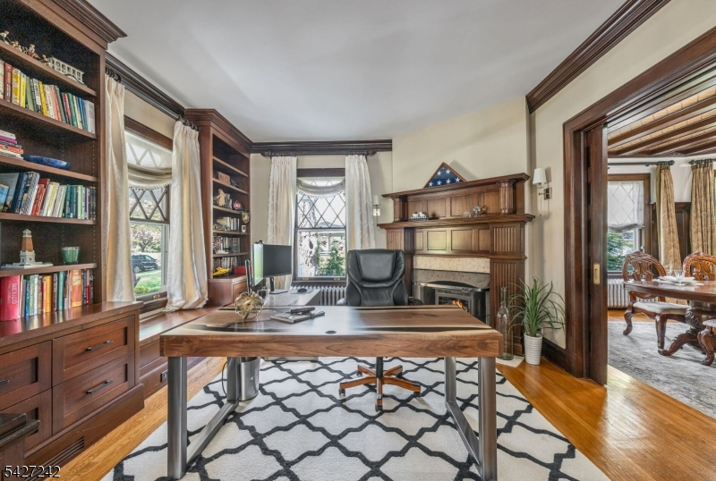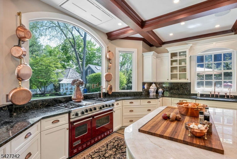 Set on a breathtaking 280-ft landscaped property along prestigious Spring Avenue, this exceptional 5-bedroom, 4.5-bath Colonial is surrounded by some of Ridgewood's most iconic homes, offering a rare blend of timeless beauty and modern luxury. A graceful curved white picket fence, port cochere, and cedar roof create outstanding curb appeal, while the covered front porch invites slow mornings and peaceful evenings. The backyard is a private retreat with a rear deck, greenhouse, sport court, vegetable garden, fenced lawn, and a 3-car garage with a finished loft/studio. Inside, rich original woodwork, a dramatic 3-story staircase, leaded glass French doors, stained glass windows, and coffered ceilings add warmth and character. The newly renovated custom kitchen features a 9-foot island, top-tier appliances, a cozy fireplace, and oversized sun-filled picture windows that bring the outdoors in. Formal living and dining rooms, a private office, and an updated family room with walls of windows plus an adjoining mudroom offer both elegance and ease. Upstairs, the serene primary suite with spa-like bath is complemented by four additional bedrooms and a laundry room. The lower level adds a versatile family room, guest suite, new full bath, second laundry, hobby room, and ample storage. Ideally located near top-rated schools, downtown Ridgewood, and NYC transportation, this is a truly special home ready to be enjoyed for years to come.